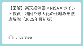 money 【図解】楽天経済圏×NISA×ポイント投資|利回り最大化の仕組みを徹底解説(2025年最新版) 楽天経済圏でNISA口座を運用する方法を図解で解説。カード決済・キャッシュ積立・ポイント投資を組み合わせた最適ルートを紹介。 2025.10.13 money