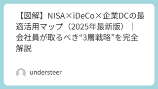 money 【図解】NISA×iDeCo×企業DCの最適活用マップ(2025年最新版)|会社員が取るべき“3層戦略”を完全解説 NISA・iDeCo・企業DCの違いと活用順序を図解で解説。会社員が税制優遇を最大化し、老後資産を最も効率的に増やす3層戦略を紹介。 2025.10.16 money