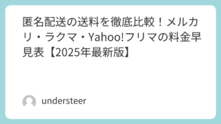 furima 匿名配送の送料を徹底比較!メルカリ・ラクマ・Yahoo!フリマの料金早見表【2025年最新版】 メルカリ・ラクマ・Yahoo!フリマの匿名配送を徹底比較。2025年最新版の送料一覧と補償の違いを早見表で紹介。出品者が選ぶべきアプリをケース別に解説します。 2025.10.03 furima