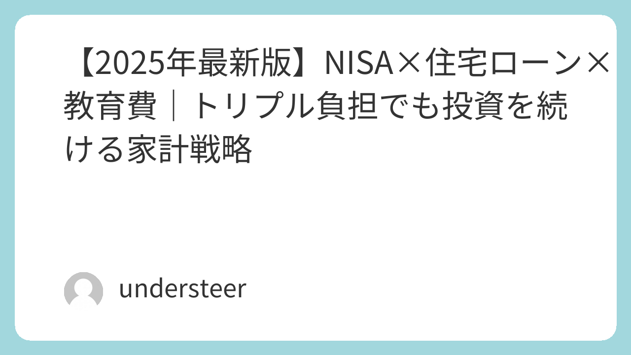 | ✅ NISA・住宅・教育費は両立可能 | 配分ルール(住宅25%・投資10%以上)を守る |