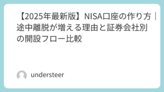 money 【2025年最新版】NISA口座の作り方|途中離脱が増える理由と証券会社別の開設フロー比較 NISA口座を途中でやめる人が急増中。楽天・SBI・マネックス・auカブコムなど主要4社の開設手順と違いを徹底比較。離脱しないコツも解説。 2025.10.13 money
