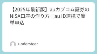 money 【2025年最新版】auカブコム証券のNISA口座の作り方|au ID連携で簡単申込 auカブコム証券のNISA口座を最短で開設する方法を解説。au IDログインで自動入力・郵送不要・Ponta還元率1%の積立方法も紹介。 2025.10.13 money